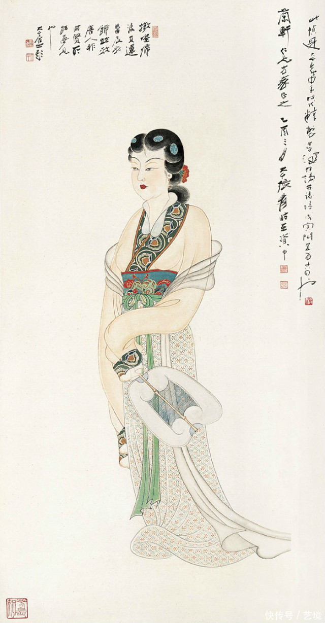回到重庆后,张大千便运转展出我方的敦煌摹仿作品。陈寅恪评价他虽是摹仿之本,兼有创造之功。在他的号令和于右任倡议下,“国立敦煌艺术究诘所”1943年建设。两年七个月的敦煌之行,张大千卖掉不少防备的古字画和我方的作品,还向东说念主举债5000两黄金,直到20年后才还清。